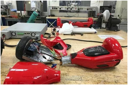 其中一項(xiàng)測(cè)試模擬電池過(guò)熱后的情形,另外一項(xiàng)模擬當(dāng)平衡車(chē)翻越特別崎嶇不平的路面導(dǎo)致電池被刺穿的情形。兩項(xiàng)測(cè)試均以電池發(fā)生威力強(qiáng)大的爆炸并且持續(xù)燃燒很長(zhǎng)一段時(shí)間而告終。大部分平衡車(chē)采用了24節(jié)電池的設(shè)計(jì),這也意味著當(dāng)某款平衡車(chē)整體發(fā)生爆炸,其產(chǎn)生爆炸的強(qiáng)度是混凝土房間內(nèi)模擬測(cè)試時(shí)所發(fā)生的24倍。