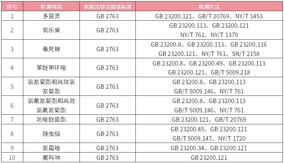 根據(jù)《2024年全國食品安全監(jiān)督抽檢實施細(xì)則》的規(guī)定,針對荔枝的監(jiān)督抽檢項目有以下10項: