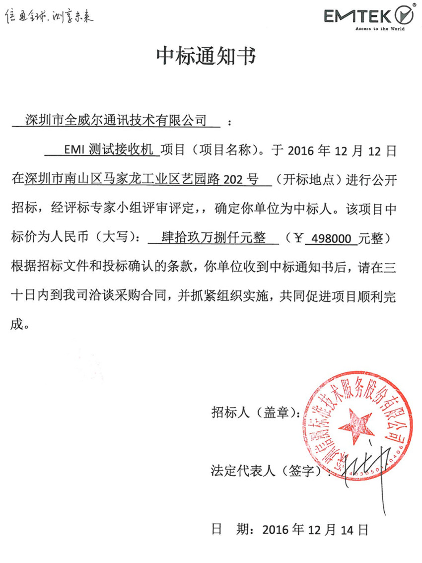 進(jìn)源儀器設(shè)備中標(biāo)通知書