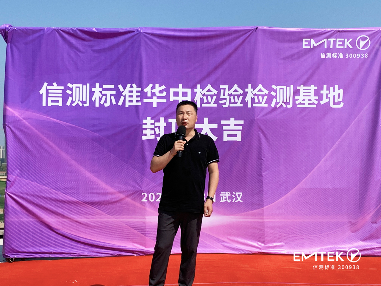 在封頂儀式上,信測標準董事長呂杰中致辭感謝施工單位、監(jiān)理單位及所有建設(shè)者的辛勤勞動和各級主管單位的大力支持!新基地建設(shè)以來一直以緊密有序、有條不紊的節(jié)奏進行,從一塊平地到高樓聳立,順利安全完成施工進度。呂杰中董事長對華中檢驗檢測基地的未來發(fā)展寄予了殷切期望,并祝福新基地建設(shè)蓬勃發(fā)展、蒸蒸日上!