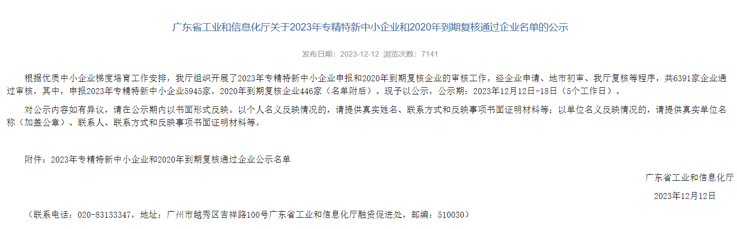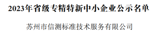 近日,廣東省工業(yè)和信息化廳和蘇州市工業(yè)和信息化局分別發(fā)布《廣東省工業(yè)和信息化廳關(guān)于2023年專精特新中小企業(yè)和2020年到期復(fù)核通過企業(yè)名單的公示》和《關(guān)于江蘇省2023年專精特新中小企業(yè)和2020年度專精特新企業(yè)復(fù)核通過企業(yè)名單的公示》,經(jīng)過相關(guān)審核,憑借在檢測領(lǐng)域持續(xù)創(chuàng)新和優(yōu)質(zhì)技術(shù)水平等優(yōu)異表現(xiàn),信測標(biāo)準(zhǔn)廣州公司、蘇州公司成功入選,被授予“廣東省2023年專精特新中小企業(yè)”和“江蘇省2023年專精特新中小企業(yè)”稱號。