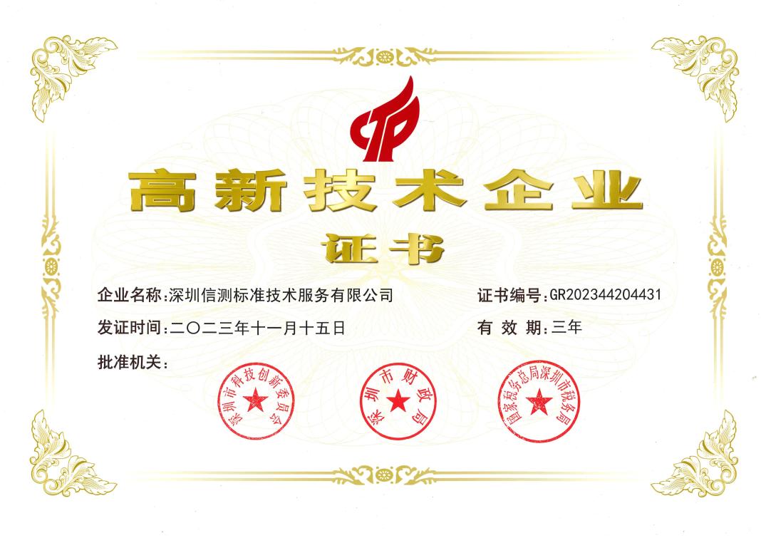 此次榮獲“高新技術(shù)企業(yè)”認定,是對我司綜合技術(shù)實力的權(quán)威認證,也是對信測標準深圳寶安檢測基地未來發(fā)展的鼓勵和鞭策。
