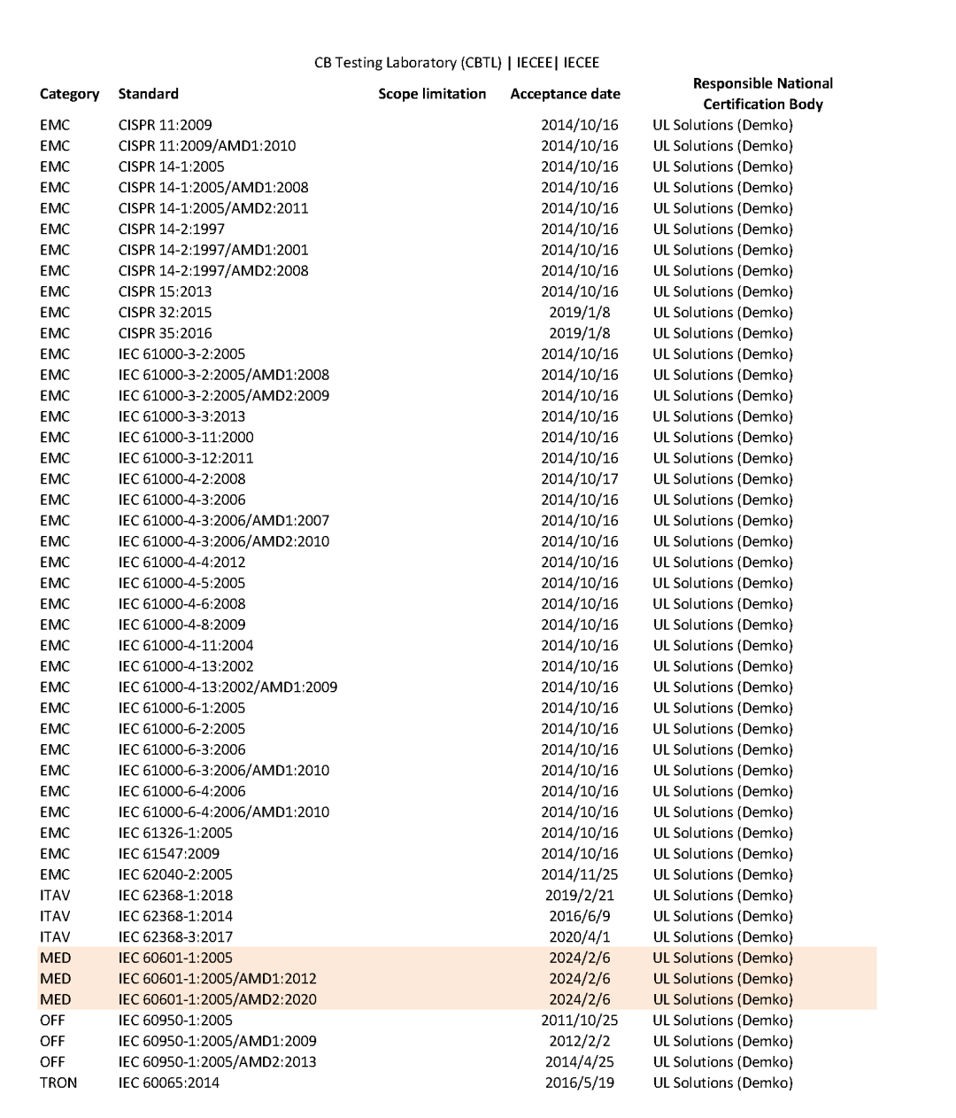 IECEE MED認可范圍: