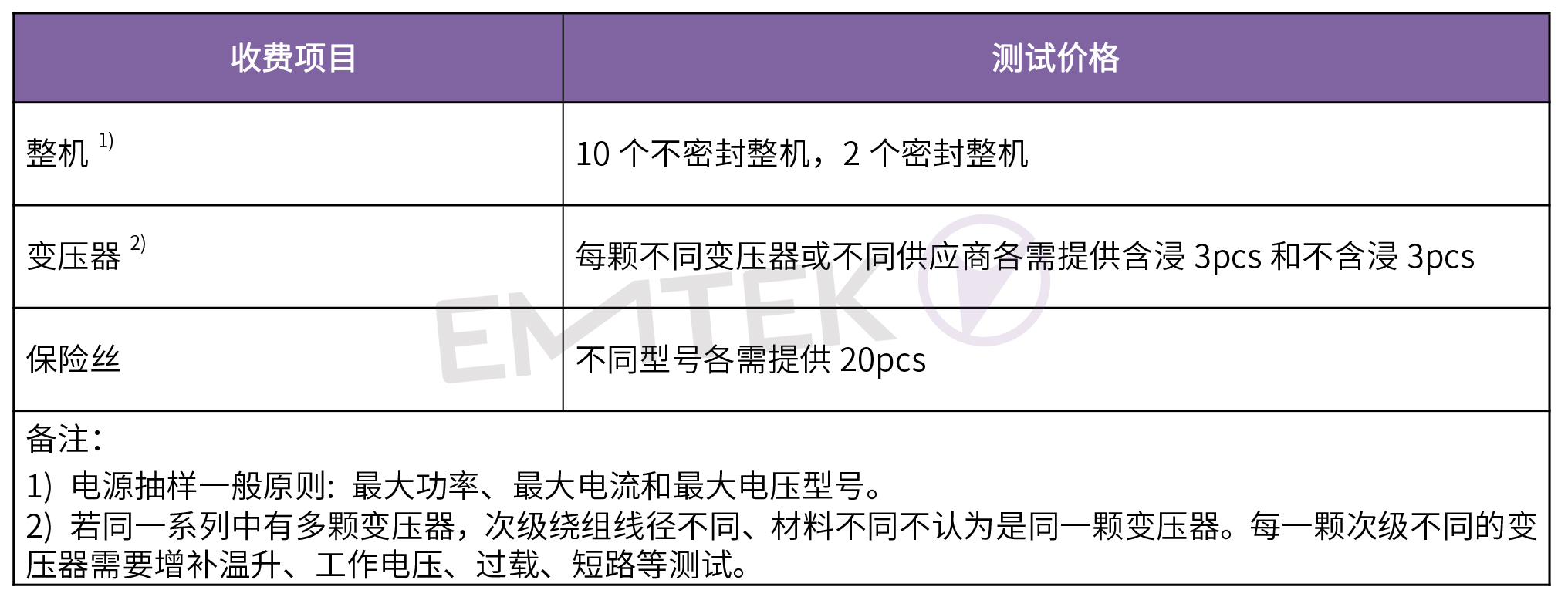 測試服務(wù)項目