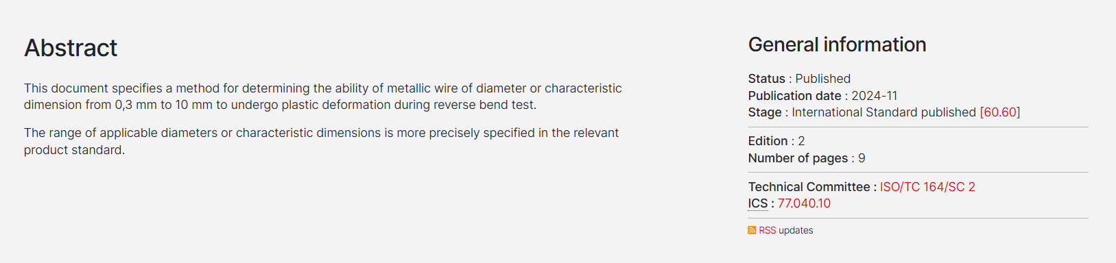 近日,由深圳信測(cè)標(biāo)準(zhǔn)技術(shù)服務(wù)股份有限公司牽頭起草的國(guó)際標(biāo)準(zhǔn)ISO 7801:2024 Metallic materials — Wire — Reverse bend test 《金屬材料 線材 反復(fù)彎曲試驗(yàn)方法》正式批準(zhǔn)發(fā)布。