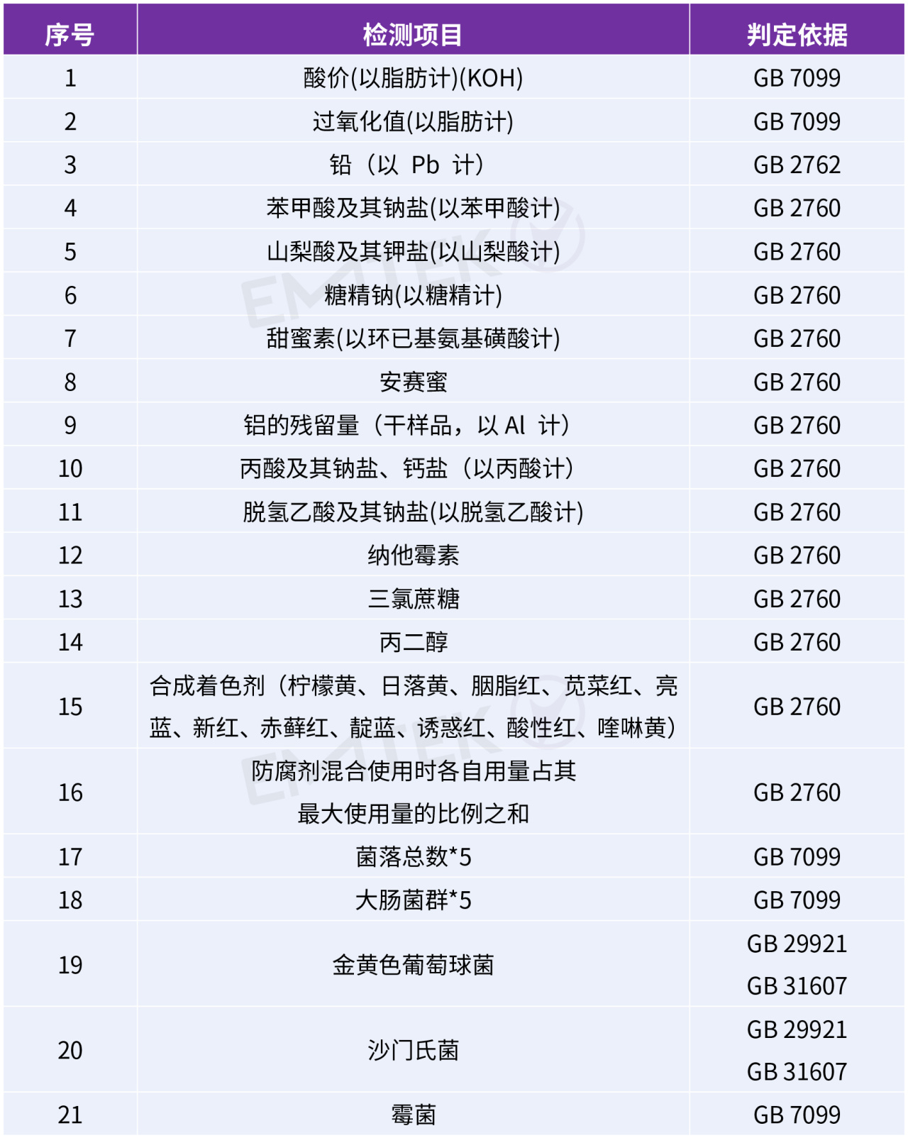 其實(shí)很簡(jiǎn)單,主要看您買的湯圓是什么狀態(tài),如果您買到的是現(xiàn)包的湯圓,則在食品安全監(jiān)督抽檢實(shí)施細(xì)則里面歸類為糕點(diǎn),它主要要經(jīng)過(guò)以下這些檢測(cè)項(xiàng)目: