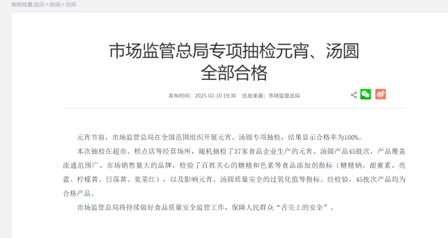 除了商家提供的合格檢測(cè)報(bào)告之外,根據(jù)市場(chǎng)監(jiān)管總局發(fā)文,市場(chǎng)監(jiān)管總局也在元宵節(jié)前在全國(guó)范圍組織開(kāi)展了元宵、湯圓專項(xiàng)抽檢,結(jié)果顯示合格率為100%。這也給消費(fèi)者們吃了一顆定心丸,大家可以放心的選購(gòu)湯圓,過(guò)一個(gè)健康美味、歡樂(lè)祥和的元宵節(jié)!