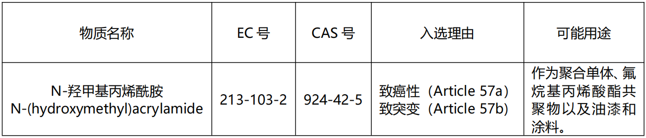 2022年6月10號(hào),歐盟化學(xué)品管理局(ECHA)在其官網(wǎng)正式公布第27批共1項(xiàng)高關(guān)注度物質(zhì),至此,SVHC清單共包括27批,共計(jì)224項(xiàng)物質(zhì)。