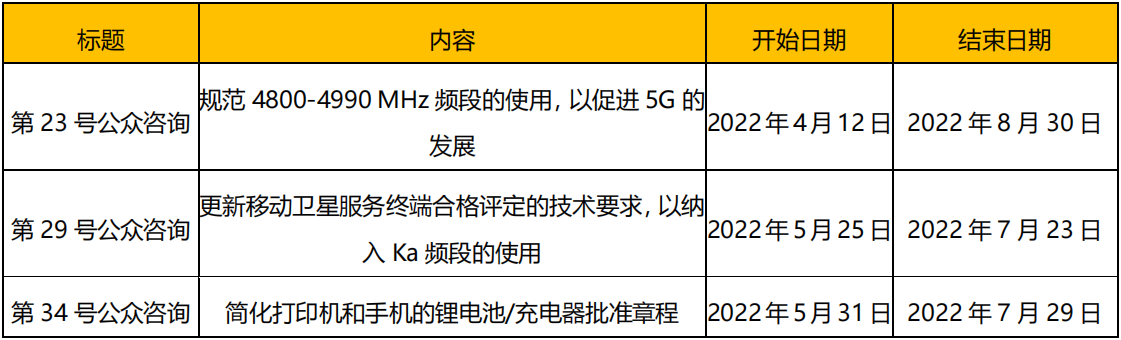 2022 年 6 月消息,巴西國家電信管理局(ANATEL)發(fā)布了多項公眾咨詢,詳情請見下表: