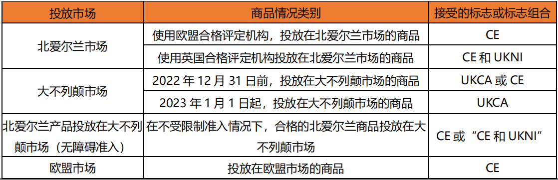 2023 年 1 月 1 日開始,UKCA 標(biāo)志將全面取代 CE 標(biāo)志作為大不列顛(英格蘭、威爾士和蘇格蘭)大多數(shù)商品的合格評定標(biāo)志。此公告由英國政府較早前宣布。英國政府同時呼吁:UKCA 標(biāo)志現(xiàn)已生效使用,貿(mào)易商應(yīng)盡早在產(chǎn)品上使用 UKCA 標(biāo)志?,F(xiàn)離過渡期僅剩最后的半年時間!鑒于 UKCA 申請發(fā)證一般經(jīng)歷 6-8 周不等,建議產(chǎn)品計劃投放英國市場的企業(yè)及早向機構(gòu)提出 UKCA 認(rèn)證申請。