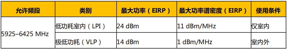 2022 年 8 月 4 日,毛里求斯信息和通信技術(shù)管理局(ICTA)發(fā)布了《關(guān)于在 5945-6425 MHz 頻率范圍內(nèi)為寬帶無線接入服務(wù)分配額外頻譜的決定》,允許 5945-6425 MHz 頻段可用于以下設(shè)備: