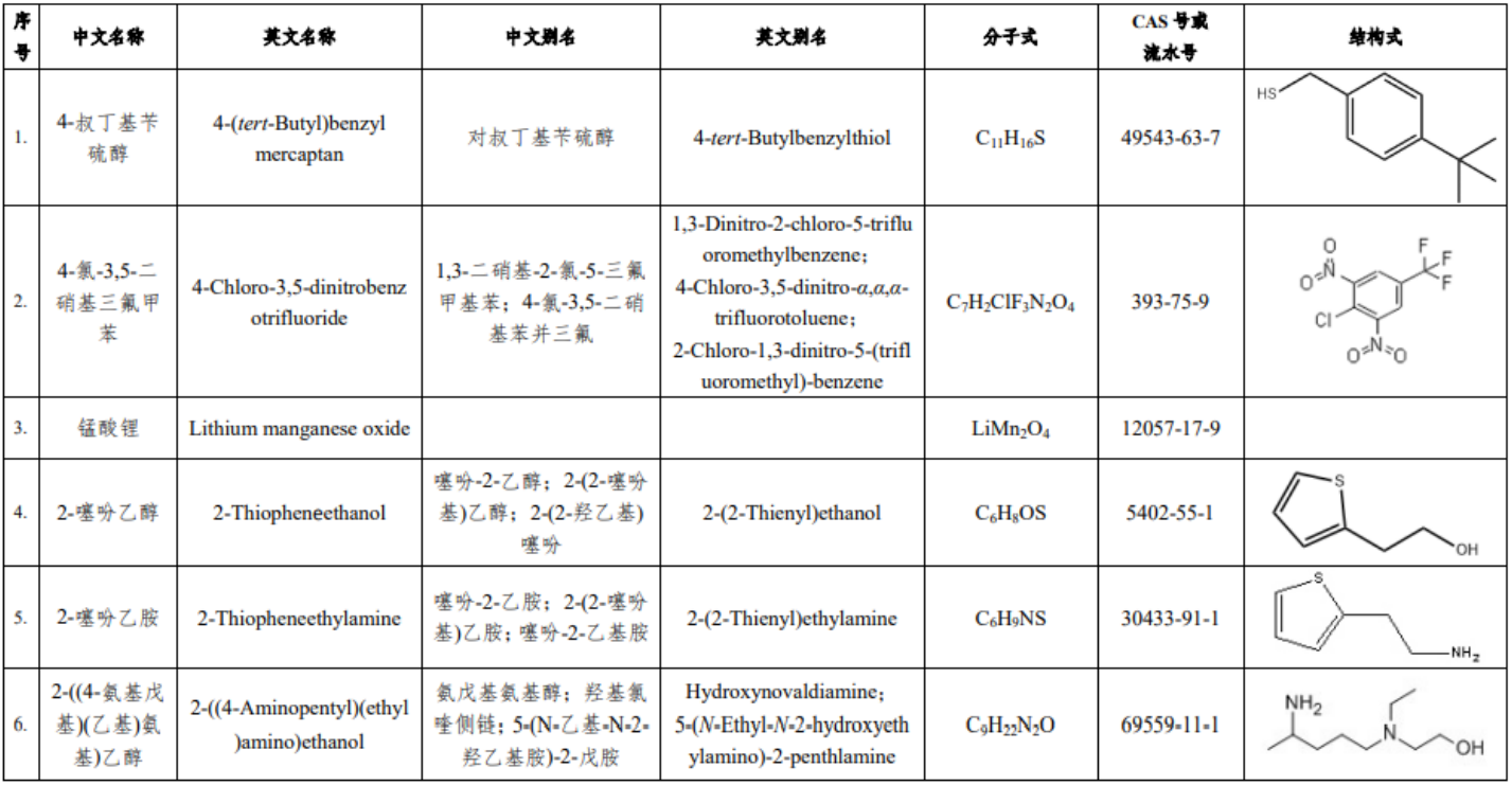 6 種化學(xué)物質(zhì)擬增補(bǔ)列入《中國現(xiàn)有化學(xué)物質(zhì)名錄》