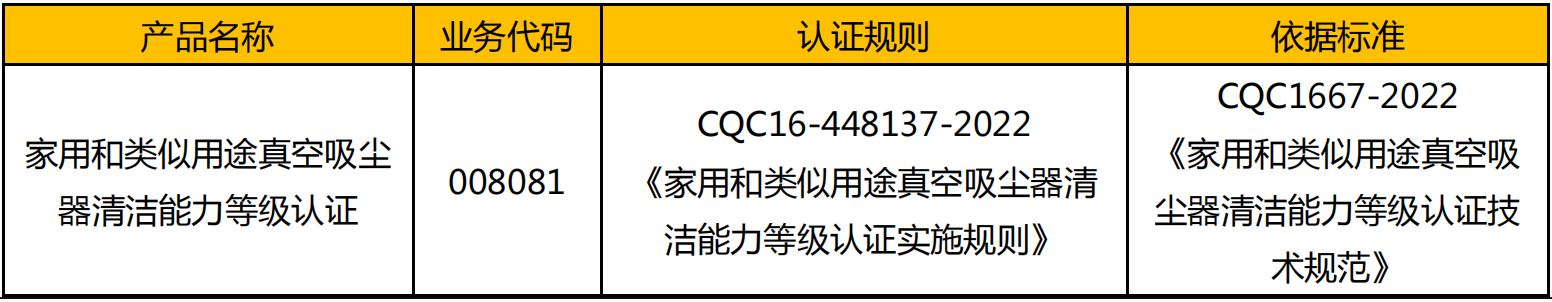 中國質(zhì)量認(rèn)證中心發(fā)布關(guān)于開通家用和類似用途真空吸塵器清潔能力等級(jí)認(rèn)證業(yè)務(wù)的通知