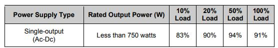 4.0 版本把電源輸出以750W 為界限劃定了不同的能效要求: