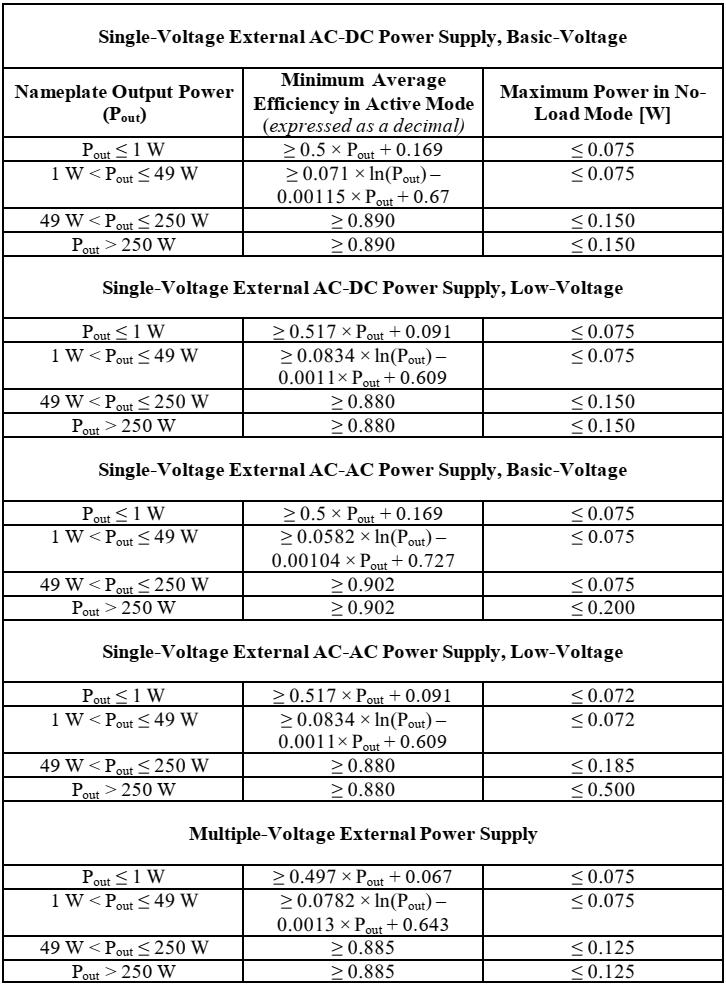 ? 所有在最終法規(guī)發(fā)布后2 年當(dāng)天或之后制造的外部電源,應(yīng)符合以下VII 級(jí)標(biāo)準(zhǔn);