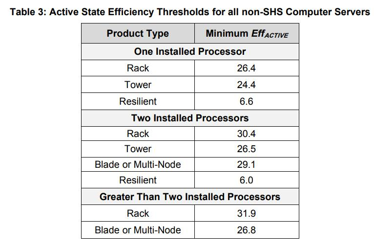4.0 版本中對(duì)于非大容量服務(wù)器的活動(dòng)狀態(tài)效率閾值要求: