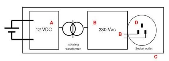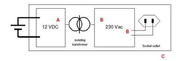 (2)從逆變輸出(B)到可接觸表面(C):雙重或加強(qiáng)絕緣