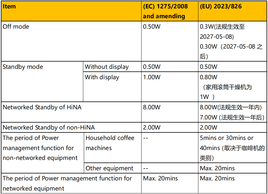 對(duì)筆記本電腦,長(zhǎng)空閑功率<6W,其關(guān)機(jī)模式、待機(jī)模式和網(wǎng)絡(luò)待機(jī)模式仍然適用于新指令(EU) 2023/826,而不在電腦(EU) No 617/2013 內(nèi)。