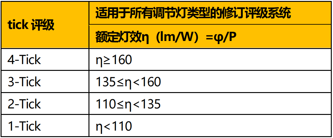 (2)所有受管制的燈泡 tick 評(píng)級(jí)將整合為單一評(píng)級(jí),如下表: