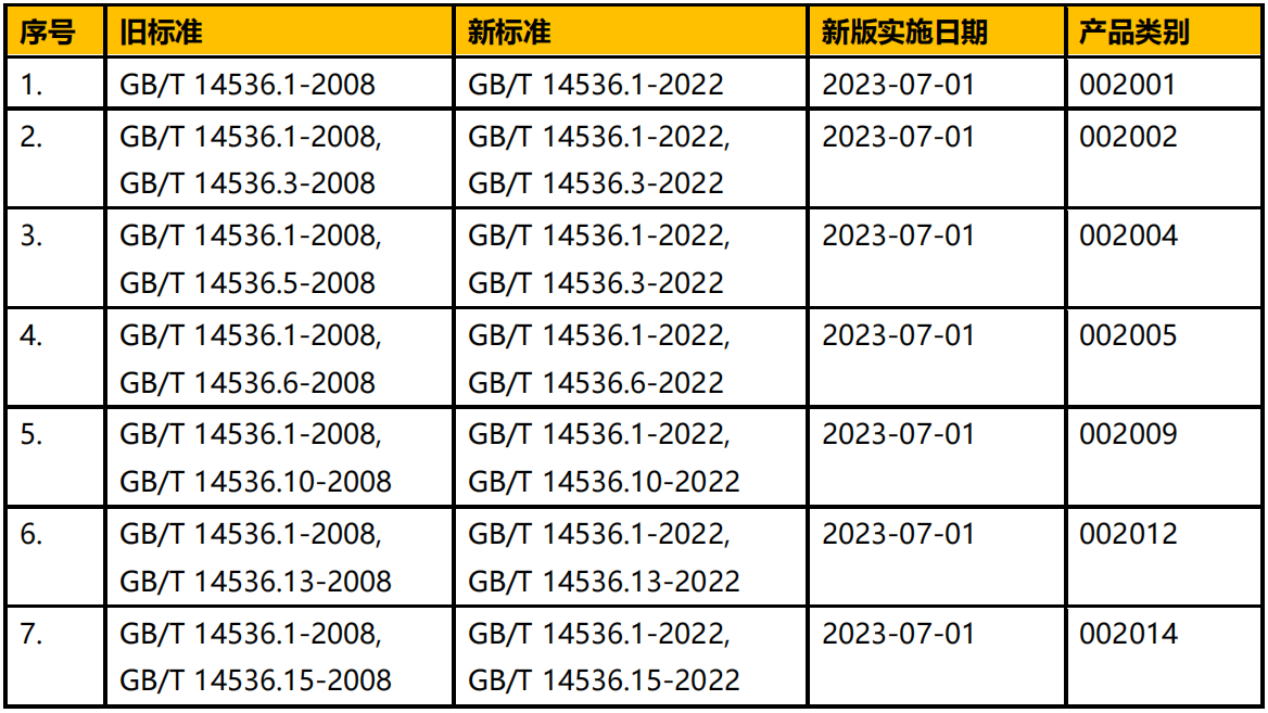 GB/T 14536.1-2022《電自動(dòng)控制器 第 1 部分:通用要求》等標(biāo)準(zhǔn)(以下簡稱“新標(biāo)準(zhǔn)”)已發(fā)布,并將于 2023 年 7 月 1 日實(shí)施(見表 1)。中國質(zhì)量認(rèn)證中心(簡稱 CQC)對(duì)涉及表 1 中標(biāo)準(zhǔn)的 CQC13-448321-2016《家用和類似用途電自動(dòng)控制器安全認(rèn)證規(guī)則》進(jìn)行了修訂。現(xiàn)將規(guī)則修訂及實(shí)施新版標(biāo)準(zhǔn)有關(guān)要求通知如下: