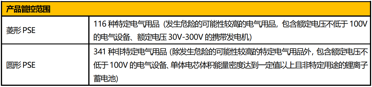 PSE 是日本政府針對(duì)電子產(chǎn)品的強(qiáng)制性安全認(rèn)證。根據(jù)日本經(jīng)濟(jì)產(chǎn)業(yè)?。∕inistry of Economy, Trade and Industry,METI)的電氣用品安全法要求,通用電氣設(shè)備、額定電壓30V-300V 的攜帶發(fā)電機(jī)、單體電芯體積能量密度達(dá)到一定值以上,且非特定用途的鋰離子蓄電池,在出口至日本銷售前需取得 PSE 認(rèn)證。