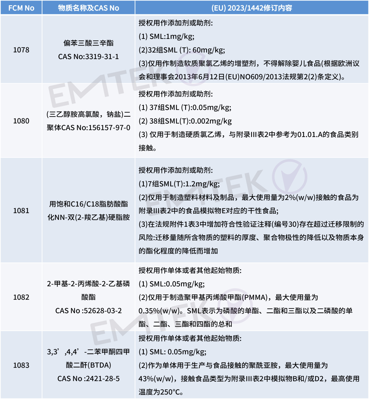 修訂鄰苯二甲酸酯[FCM No 157(DBP)、FCM No159(BBP)、FCM No 283(DEHP)、FCM No 728(DINP)、FCM No 729(DIDP)、FCM No 1085(DIBP)]的授權要求