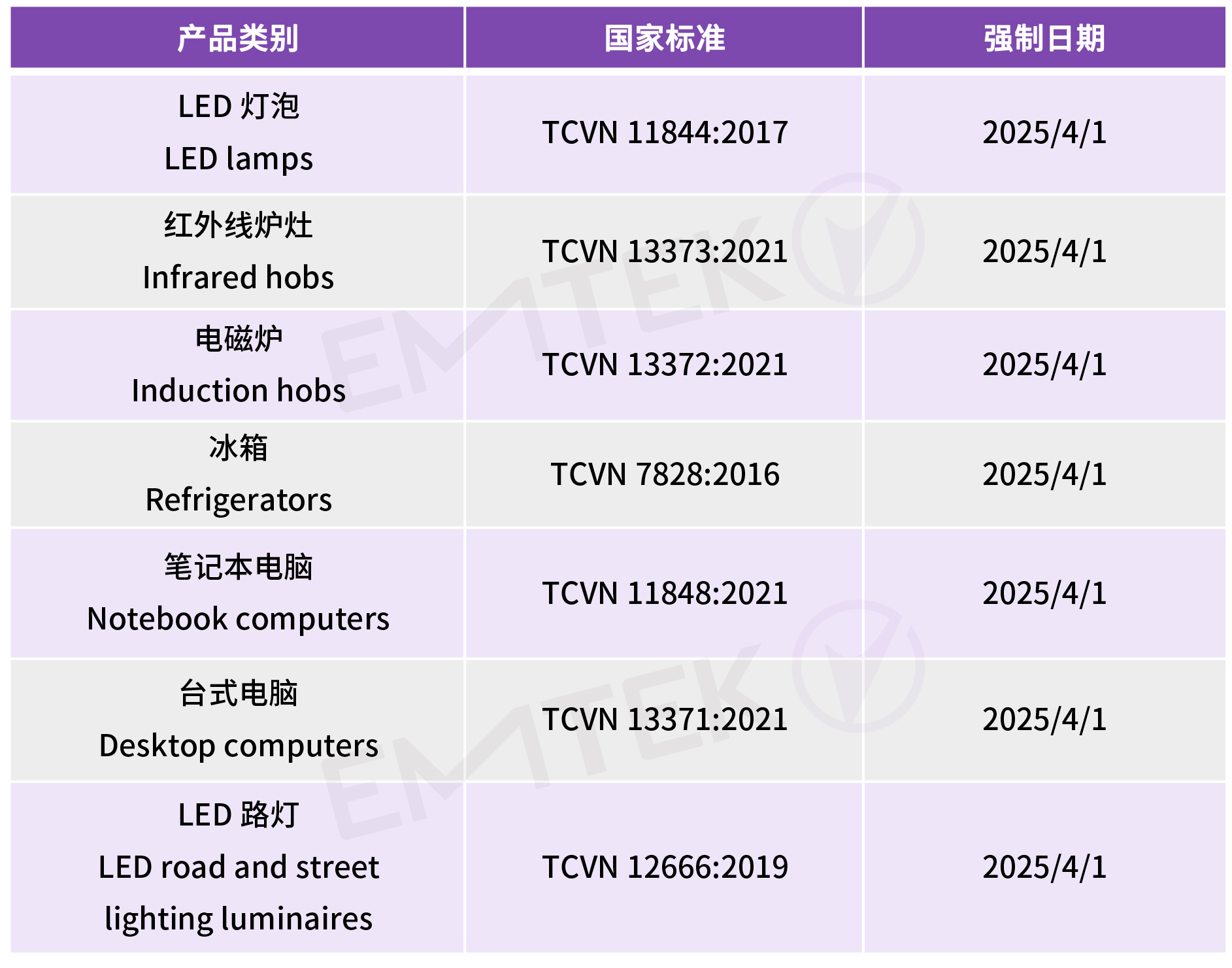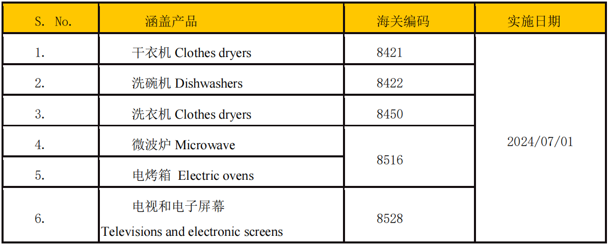 更新目前已列管的五類產(chǎn)品能效標準,將于2025 年 4 月1 日強制實施最新版。