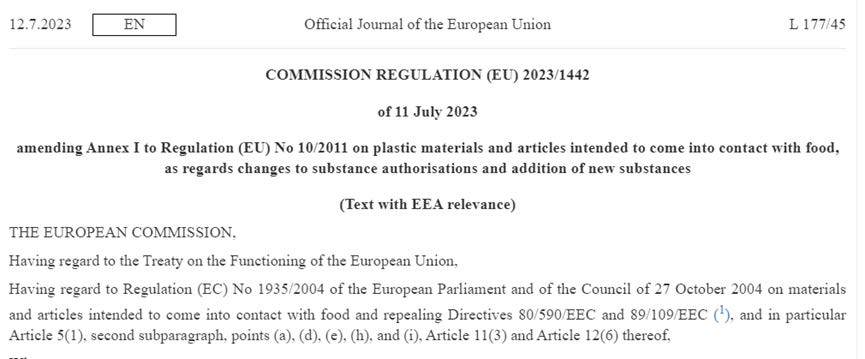 2030 年10 月:對于每年生產(chǎn)或進口量為 1 噸或以上的所有物質(zhì)。