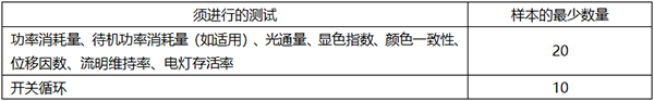 (注:進行以上測試時,須使用相同樣本。用于開關(guān)循環(huán)測試的燈不得用于其它測試。)