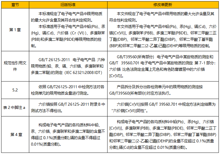 將原有的測試方法標(biāo)準(zhǔn)GB/T 26125-2011更新為GB/T 39560(所有部分)電子電氣產(chǎn)品中某些物質(zhì)的測定。