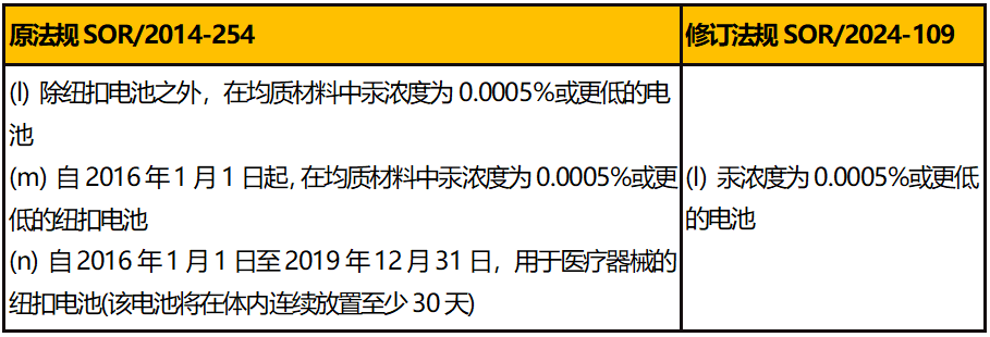2024年6月19日,加拿大發(fā)布了SOR/2024-109,對含汞產(chǎn)品法規(guī)SOR/2014-254進(jìn)行了修訂。修訂法規(guī)將自官方公報公布之日起一年后,也就是2025年6月19日生效。
