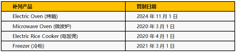 - 電冰箱:將中長(zhǎng)期能效標(biāo)準(zhǔn)的實(shí)施日期調(diào)整為2027年1月1日和2030年1月1日。