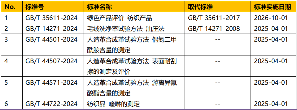 《綠色產(chǎn)品評價(jià) 紡織產(chǎn)品》、《紡織品 喹啉的測定》等多項(xiàng)國家標(biāo)準(zhǔn)發(fā)布