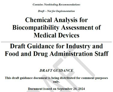 2024 年 9 月 20 日,美國食品藥品監(jiān)督管理局(U.S. FDA)發(fā)布了一項(xiàng)關(guān)于醫(yī)療器械生物相容性評估的化學(xué)表征指南草案(Chemical Analysis for Biocompatibility Assessment of Medical Devices:Draft Guidance for Industry and Food and Drug Administration Staff)