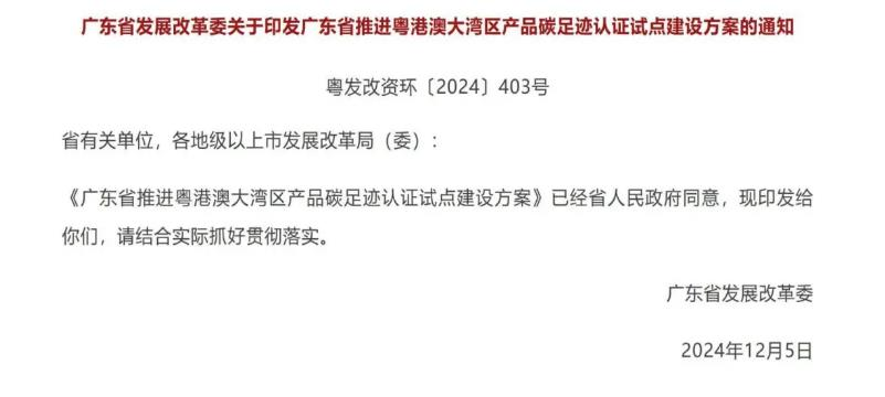 為響應(yīng)國家碳達(dá)峰碳中和戰(zhàn)略,廣東省發(fā)展和改革委員會(huì) 2024 年 12 月 5 日發(fā)布了《廣東省推進(jìn)粵港澳大灣區(qū)產(chǎn)品碳足跡認(rèn)證試點(diǎn)建設(shè)方案》。