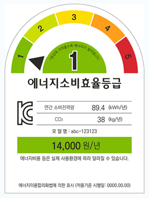 韓國 MEPS 能效等級(jí)標(biāo)簽示例如下: