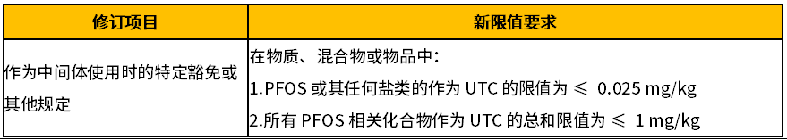 對(duì)PFOS限制要求的修訂內(nèi)容如下: