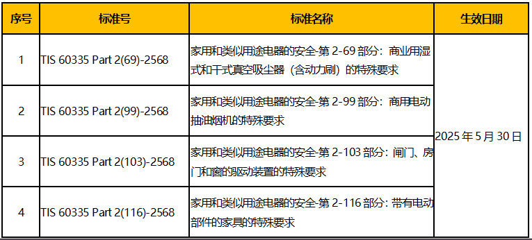 泰國(guó)工業(yè)標(biāo)準(zhǔn)協(xié)會(huì)(TISI)于2025年2月7日更新TISI標(biāo)準(zhǔn)清單,新增多項(xiàng)自愿性標(biāo)準(zhǔn),見(jiàn)表。